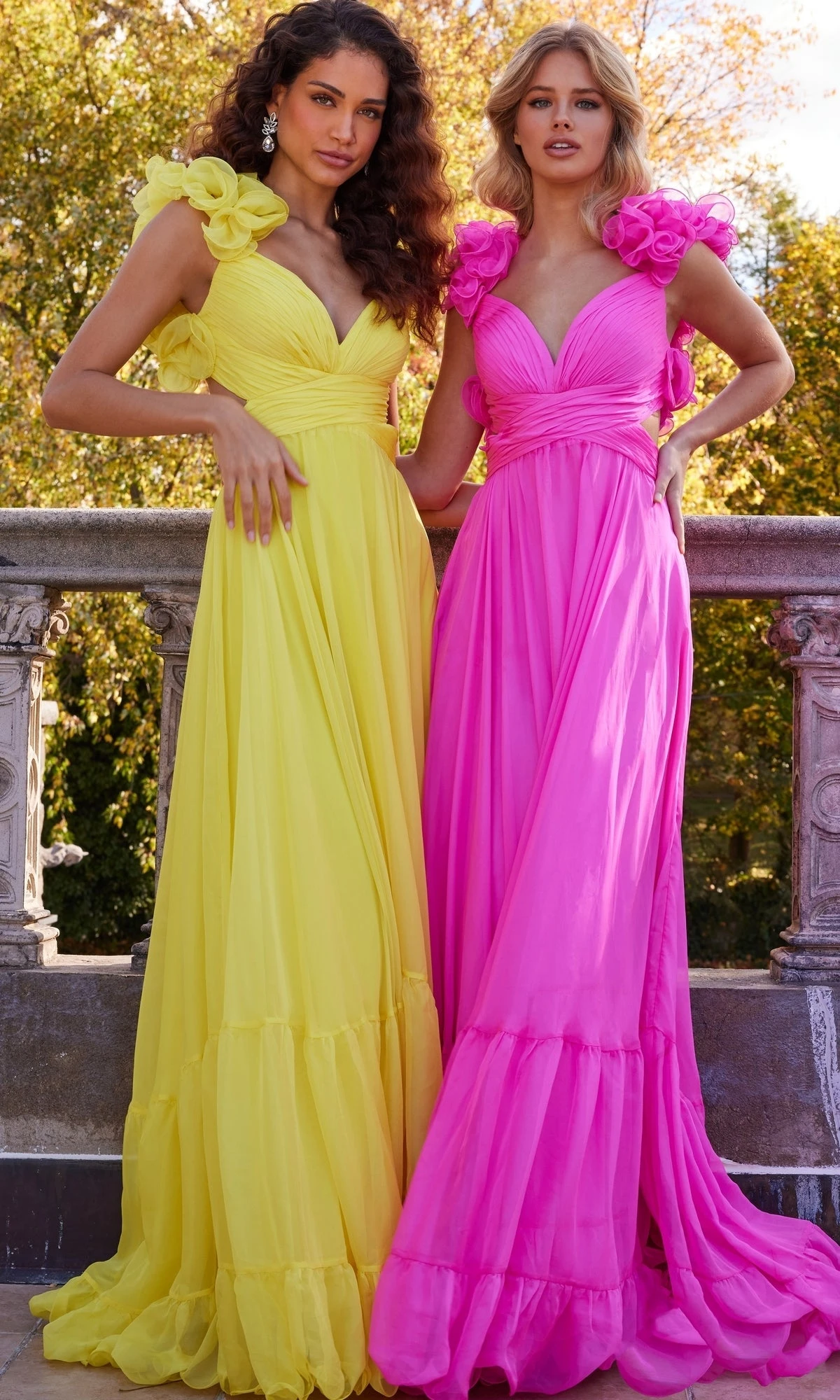 Be the belle of the ball in the stunning Formal Long Dress 23322 by Jovani. This elegant a-line chiffon dress features a flattering v-neckline, open back, and ruched bust. The delicate ruffle sleeves add a touch of romance to this timeless look. Perfect for any formal occasion.