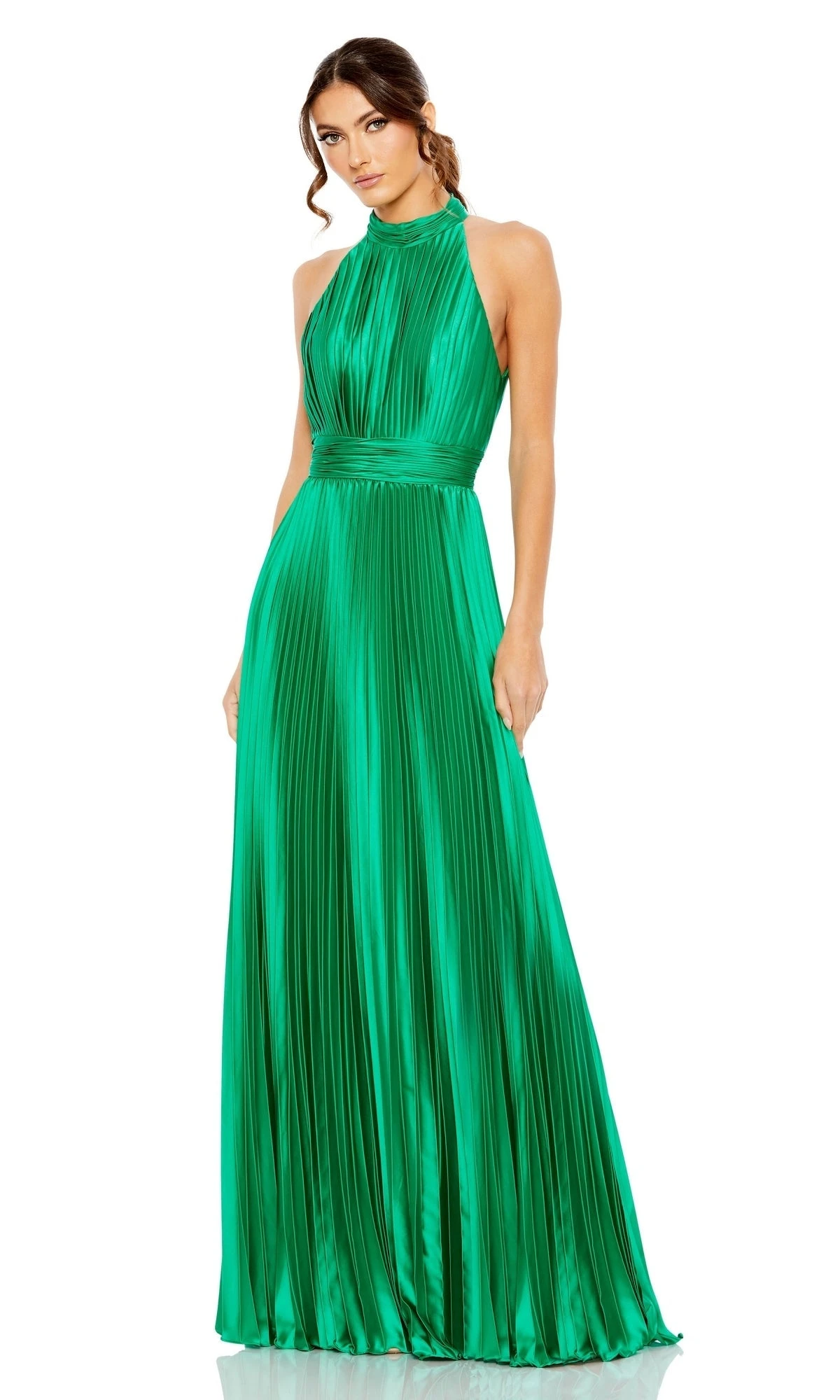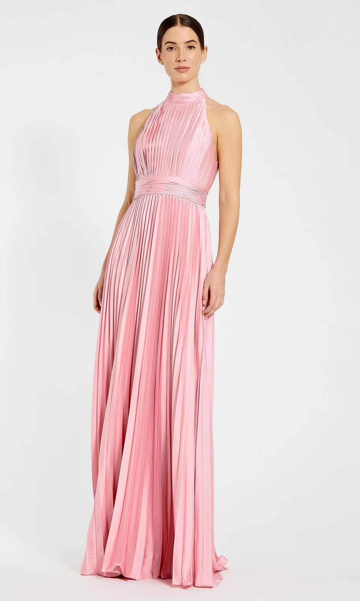 Exude elegance and poise in this beautiful long a-line pleated high neck formal dress. The empire waist silhouette is designed to flatter all body types, ensuring you feel your best throughout the entire event. From formal occasions to weddings, this dress will make you feel confident and unforgettable.
