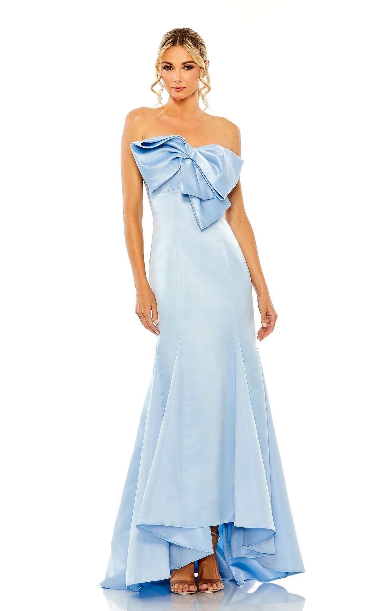 Imagine feeling elegant and comfortable at your next formal event in this stunning Mac Duggal Long Formal Dress 49701. The fitted mermaid silhouette accentuates your curves in all the right places and the peep toe hem and strapless bow bodice add a touch of whimsy to your look. Make a statement and feel confident in this unique and sophisticated dress.
