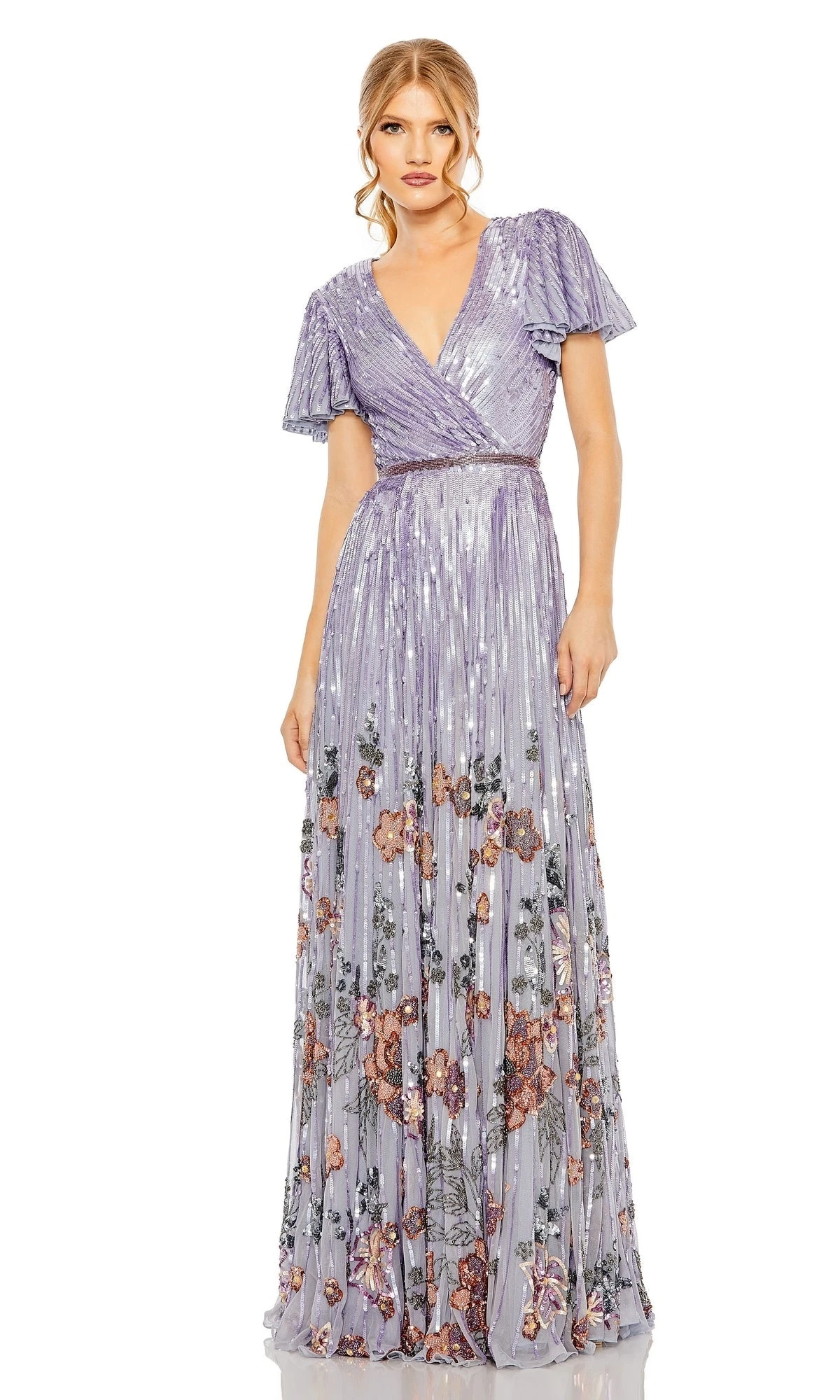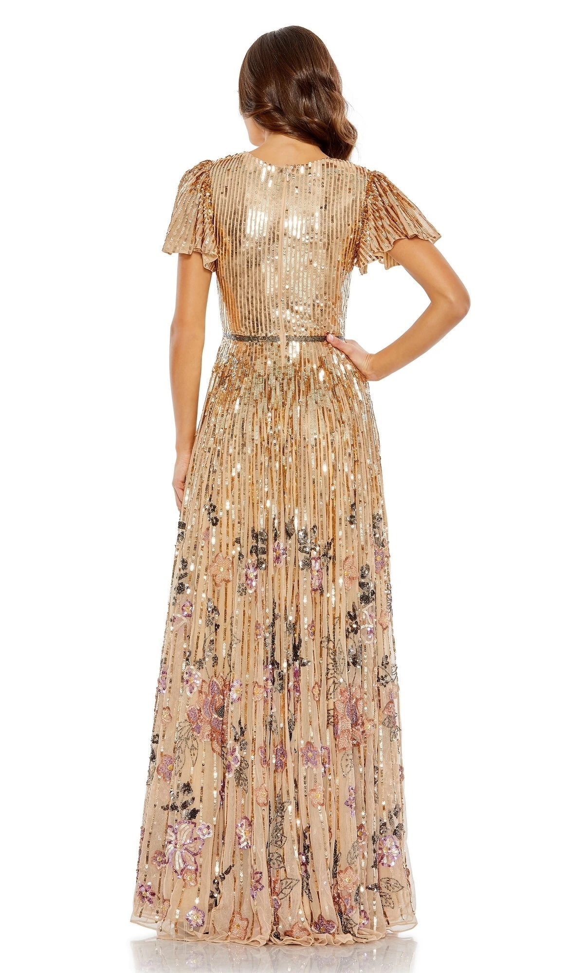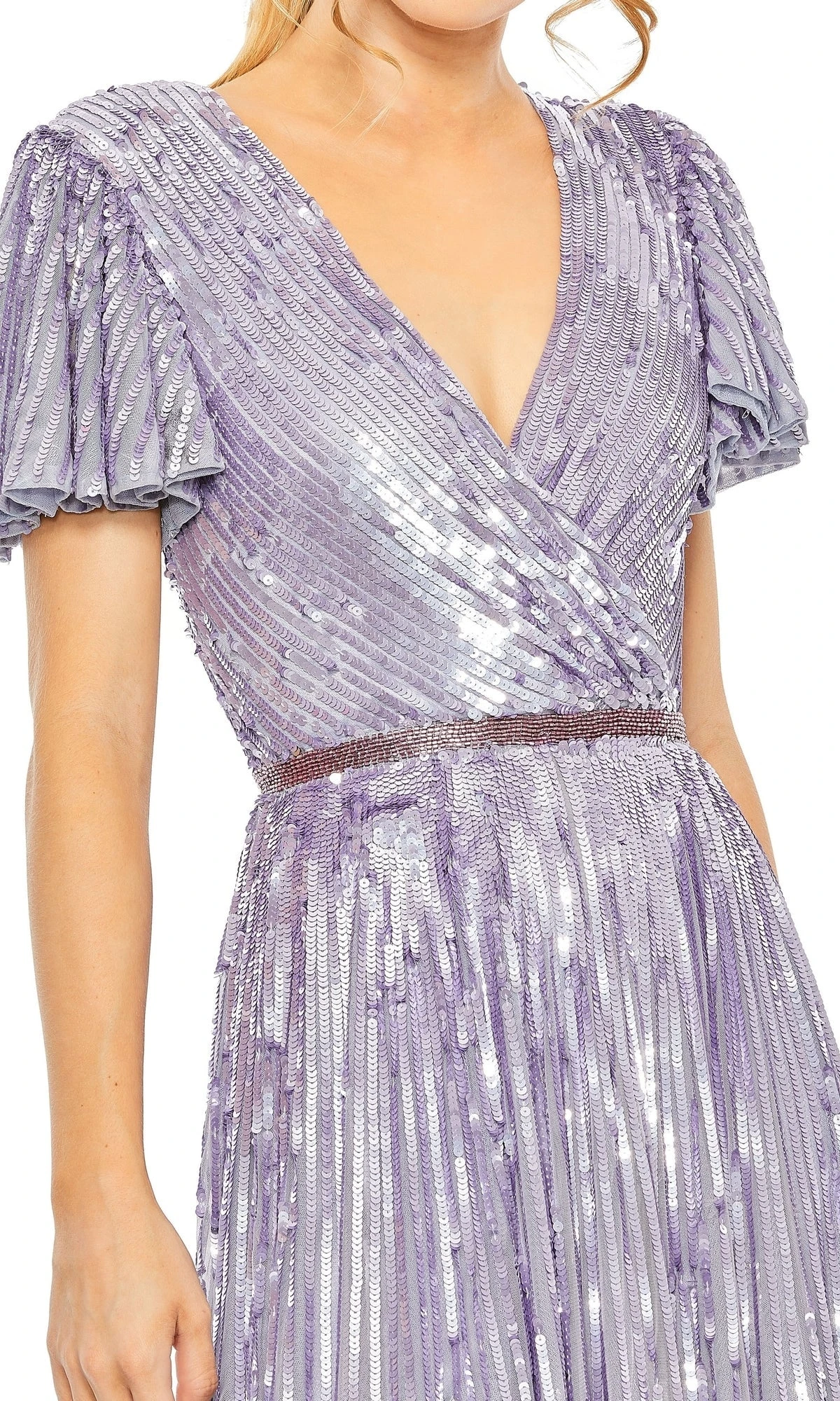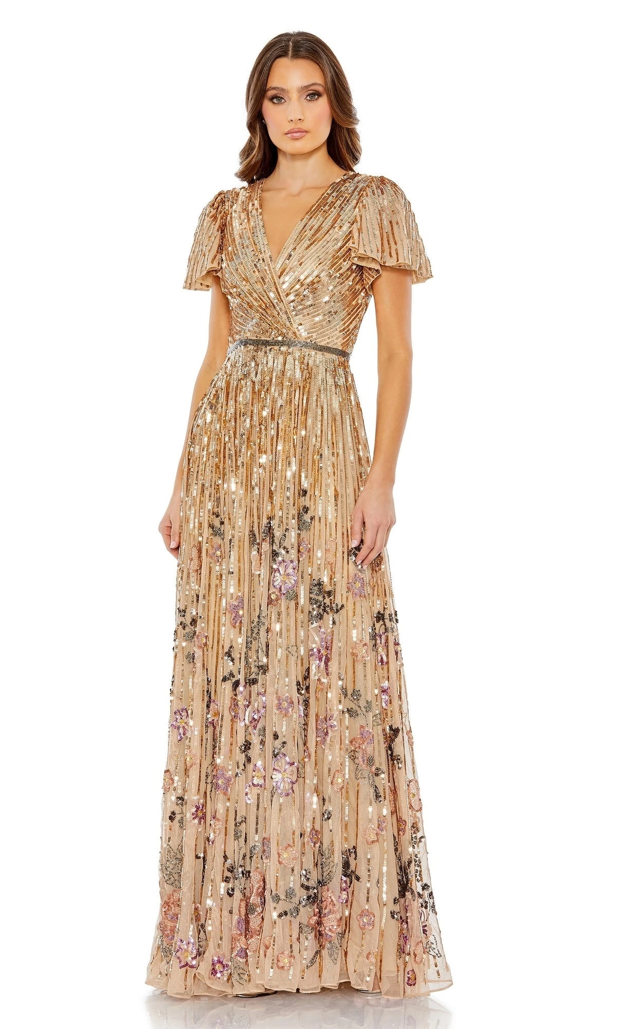 Elevate your confidence and beauty with this stunning short sleeve sequin a-line formal dress. Featuring a v-neckline and beaded belt, it’s the perfect choice to make a statement at any formal event. The elegant touches of the dress will make you stand out, whether you’re dancing or socializing with friends.