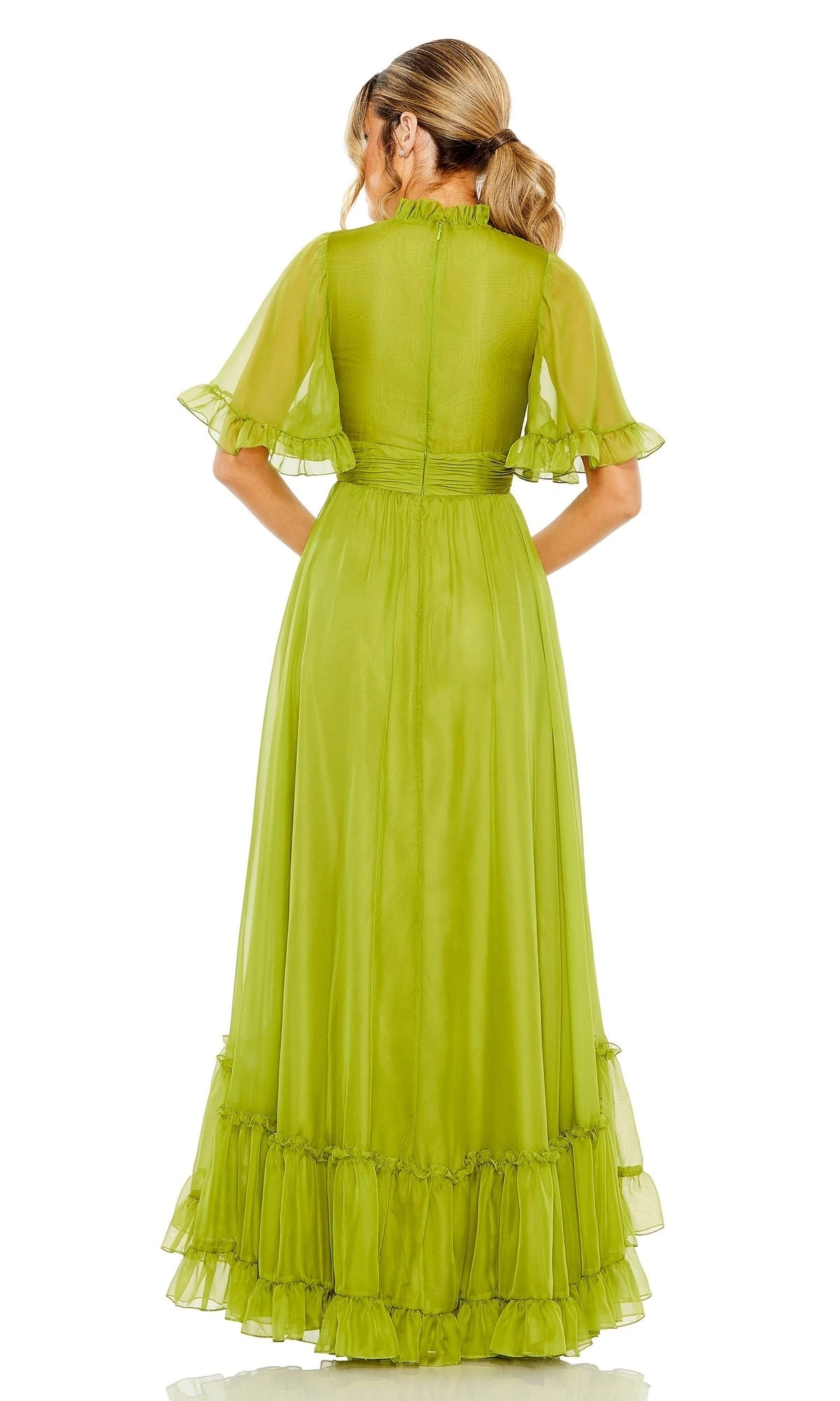 This dress features a ruffle hem, short sheer sleeves, and an empire waist that flatters your figure. It’s the perfect choice for your next formal event, offering dainty ruffle details and a touch of femininity. You’ll make a statement and feel both confident and comfortable all night long.