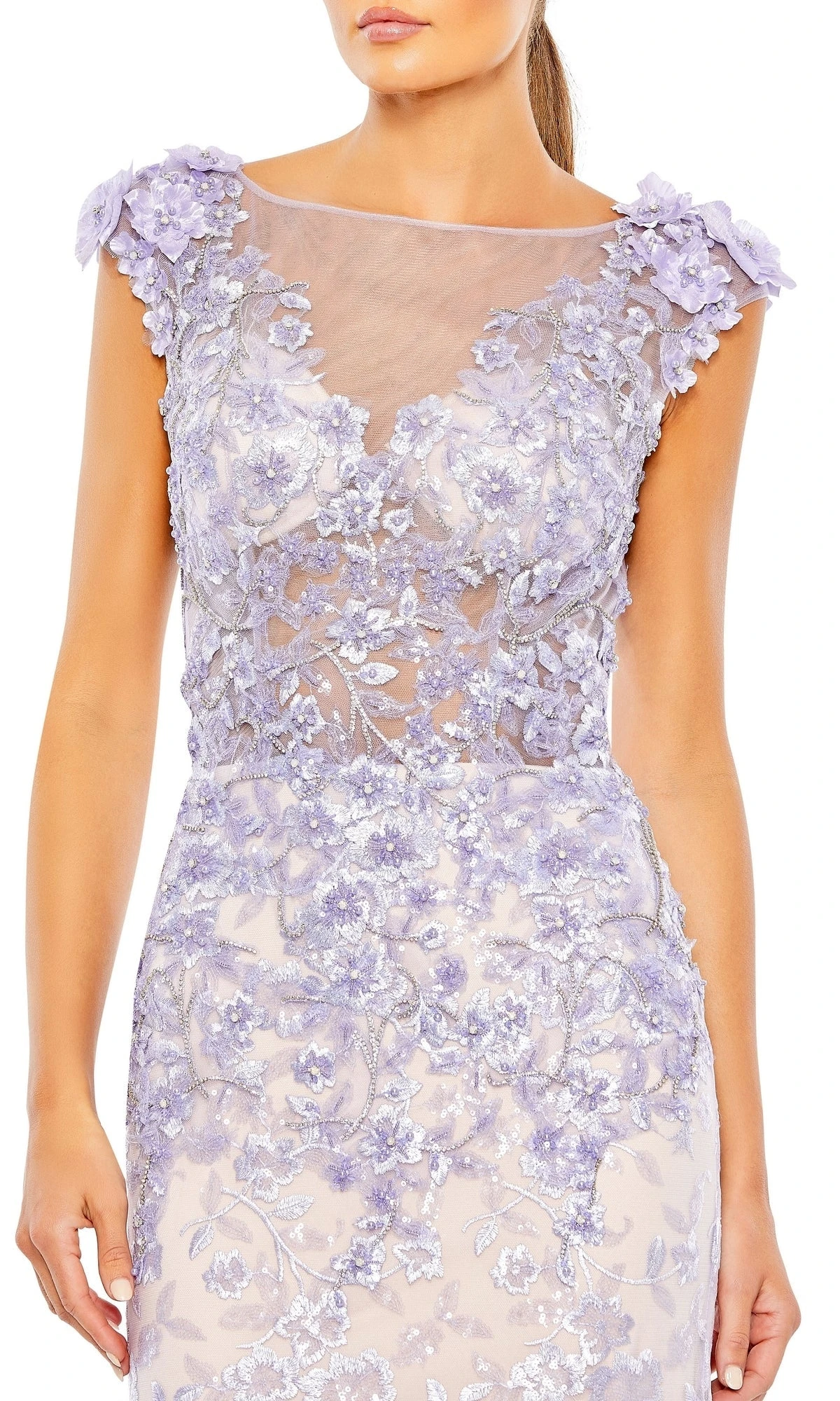 Step into the spotlight with poise and elegance in this stunning Lilac purple mermaid dress. Designed to flatter your figure and make a lasting impression, this formal gown features a sheer illusion v-neckline and open back for a touch of allure. Its long, flowing skirt ensures both comfort and sophistication, making it the perfect choice for any formal event. Elevate your style game with this must-have addition to your wardrobe.