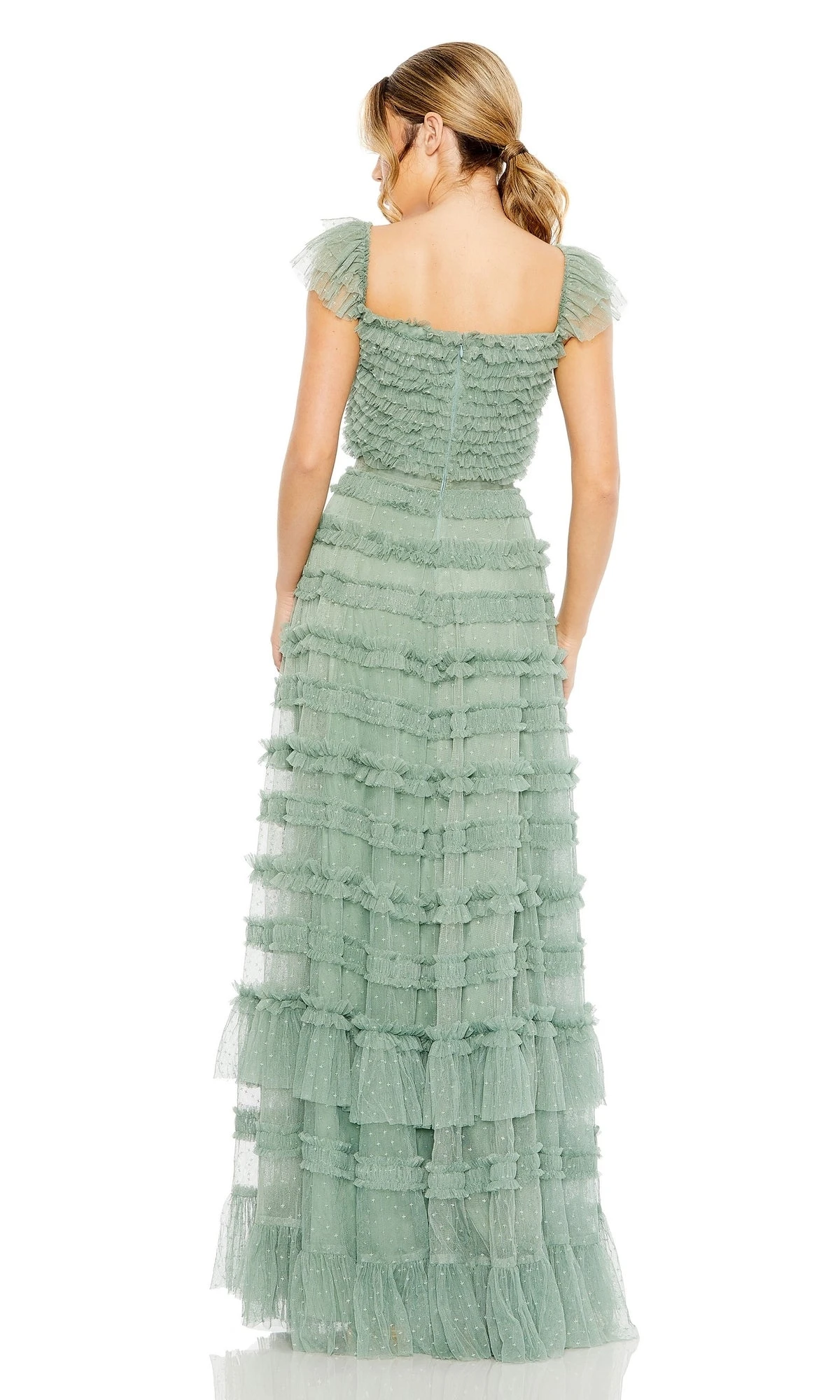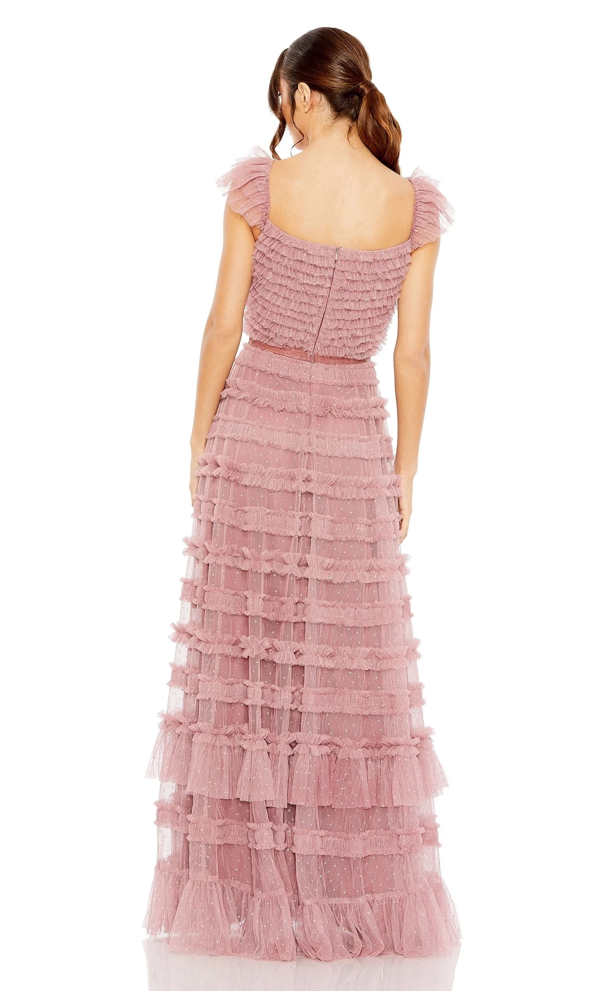 Feel confident and beautiful in this Mac Duggal long formal dress. The timeless polka dot pattern and elegant ruffle accents make it the perfect choice for any special occasion. You’ll be sure to turn heads and make a statement as you dance the night away.